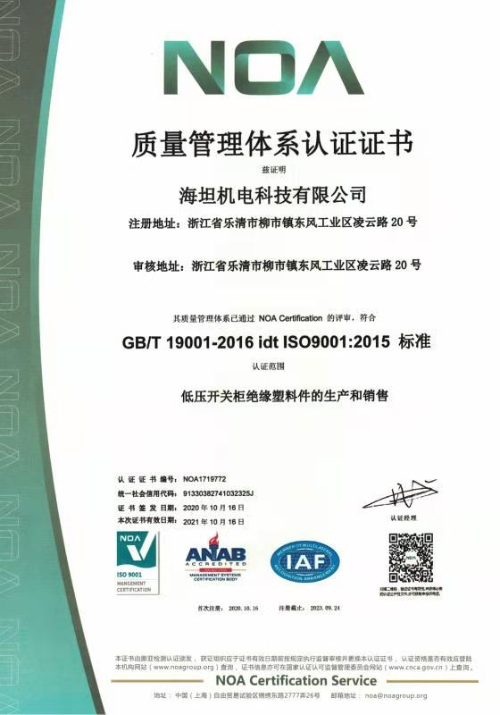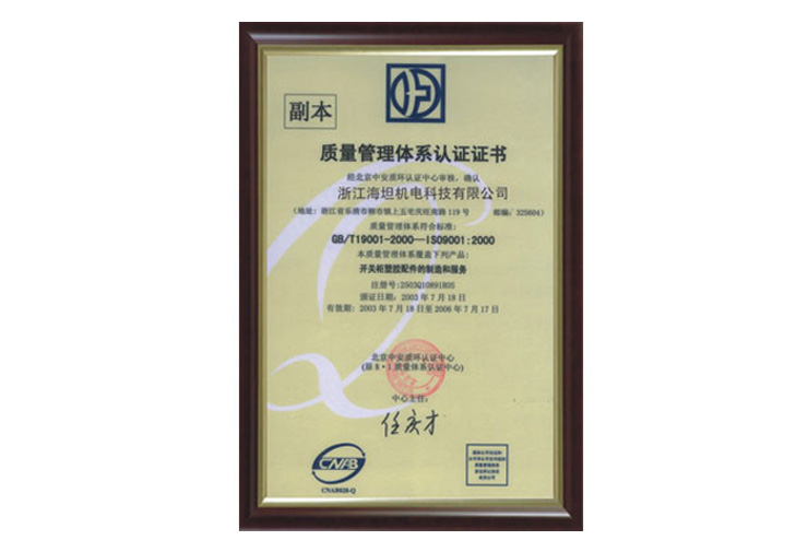 質(zhì)量管理體系認(rèn)證證書(英文版)