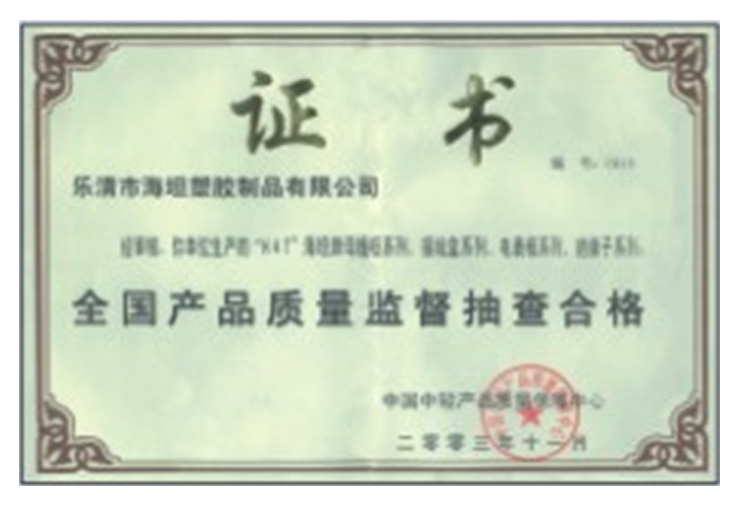 全國產(chǎn)品質(zhì)量監(jiān)督抽查合格證書